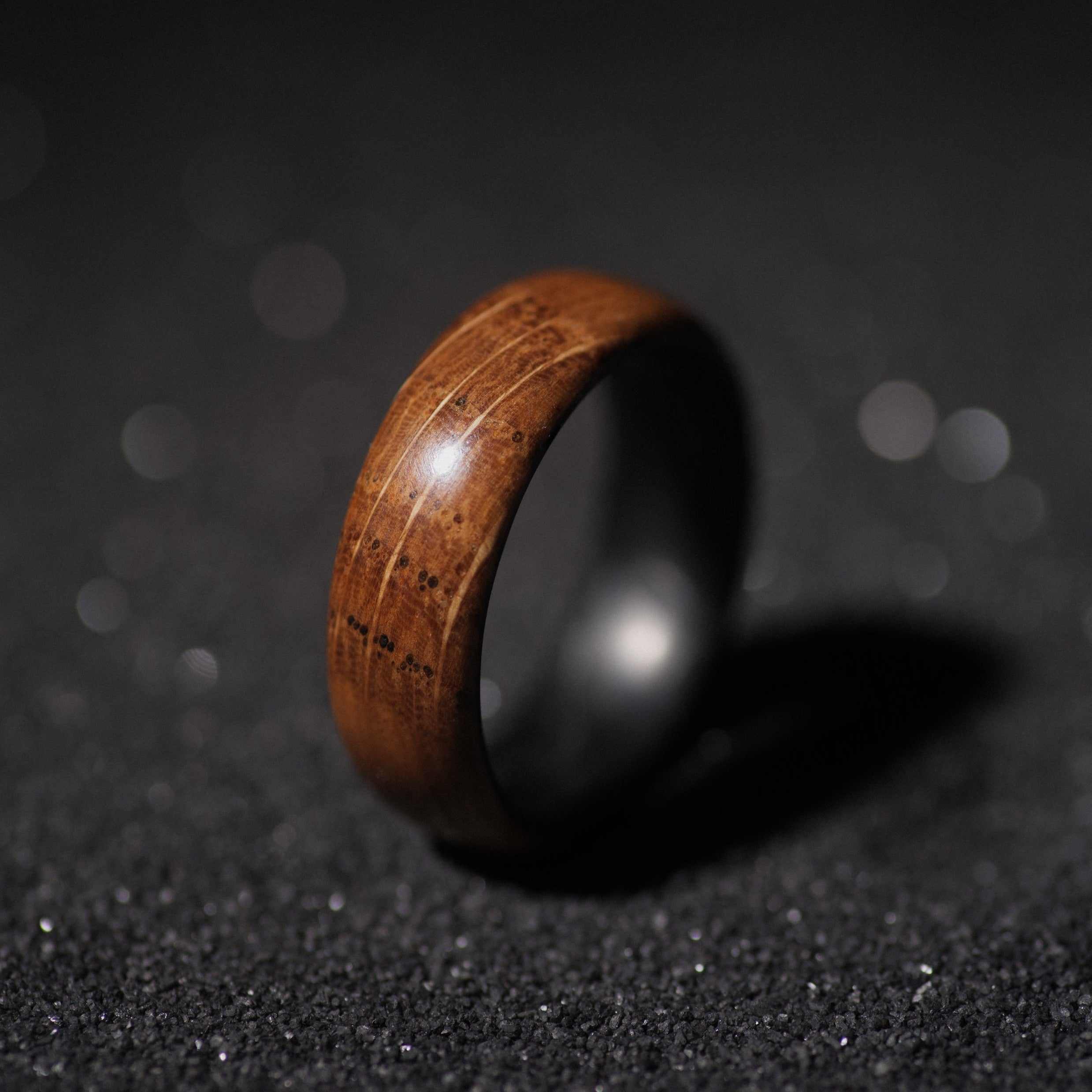 Black Ash Burl and Forged Carbon Fiber Mens Wedding Band